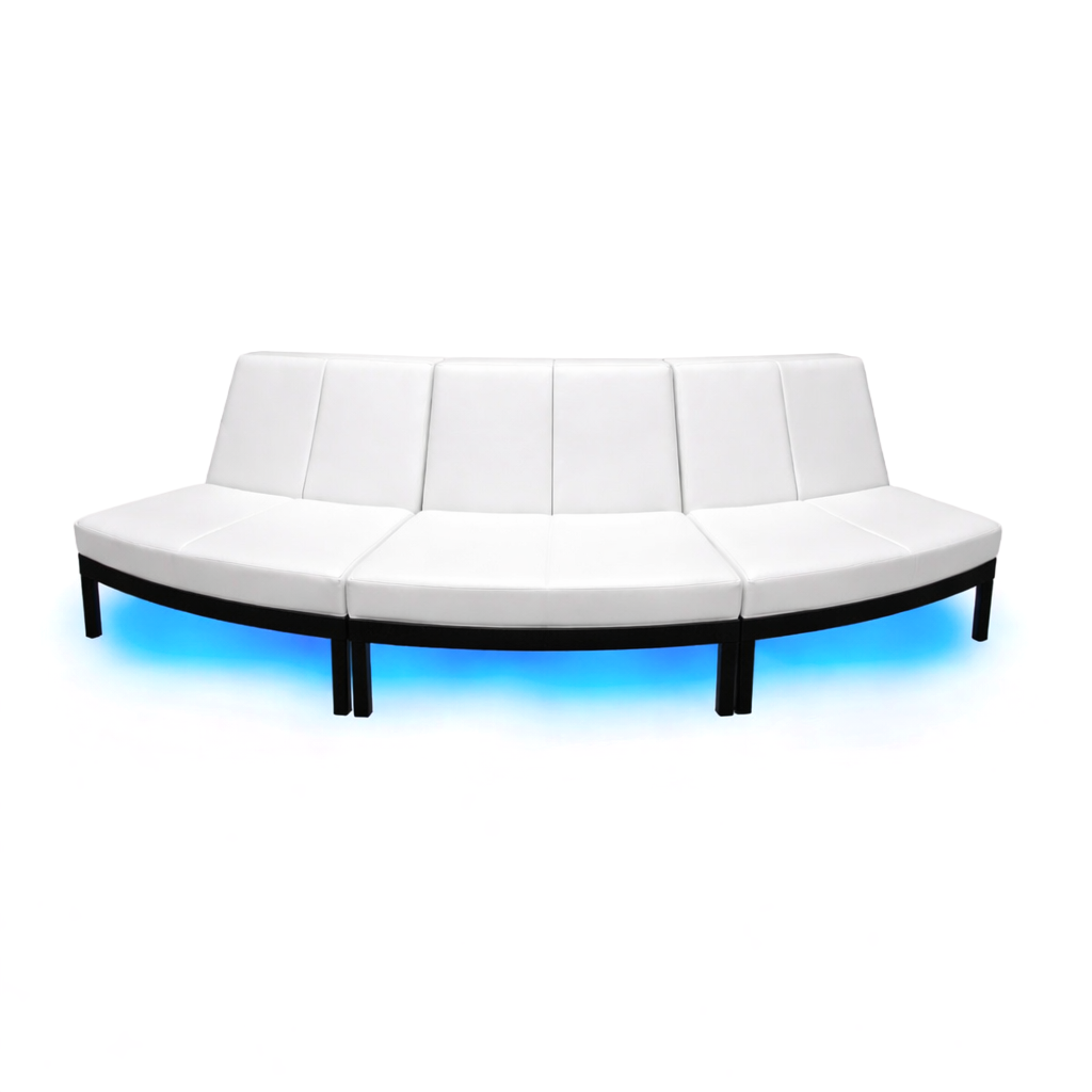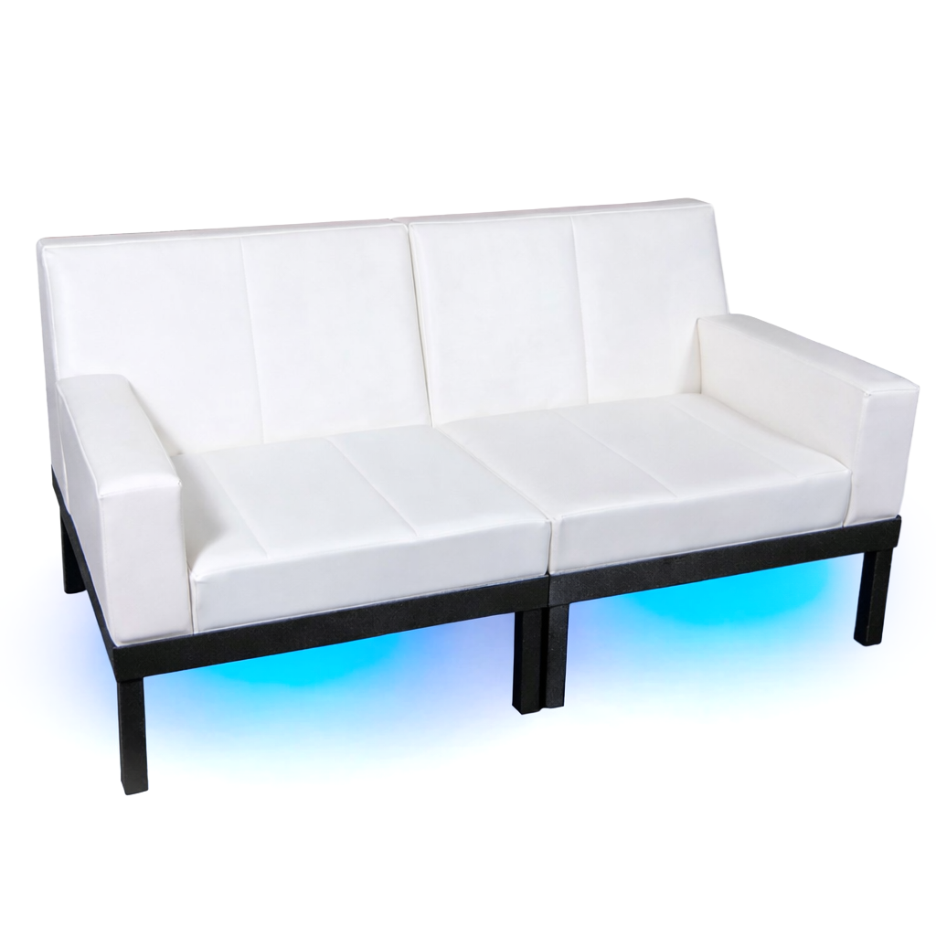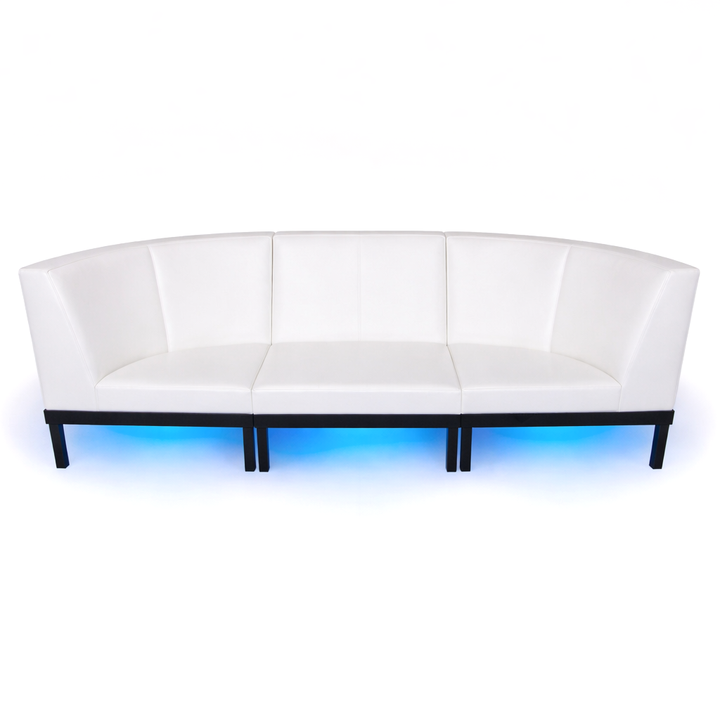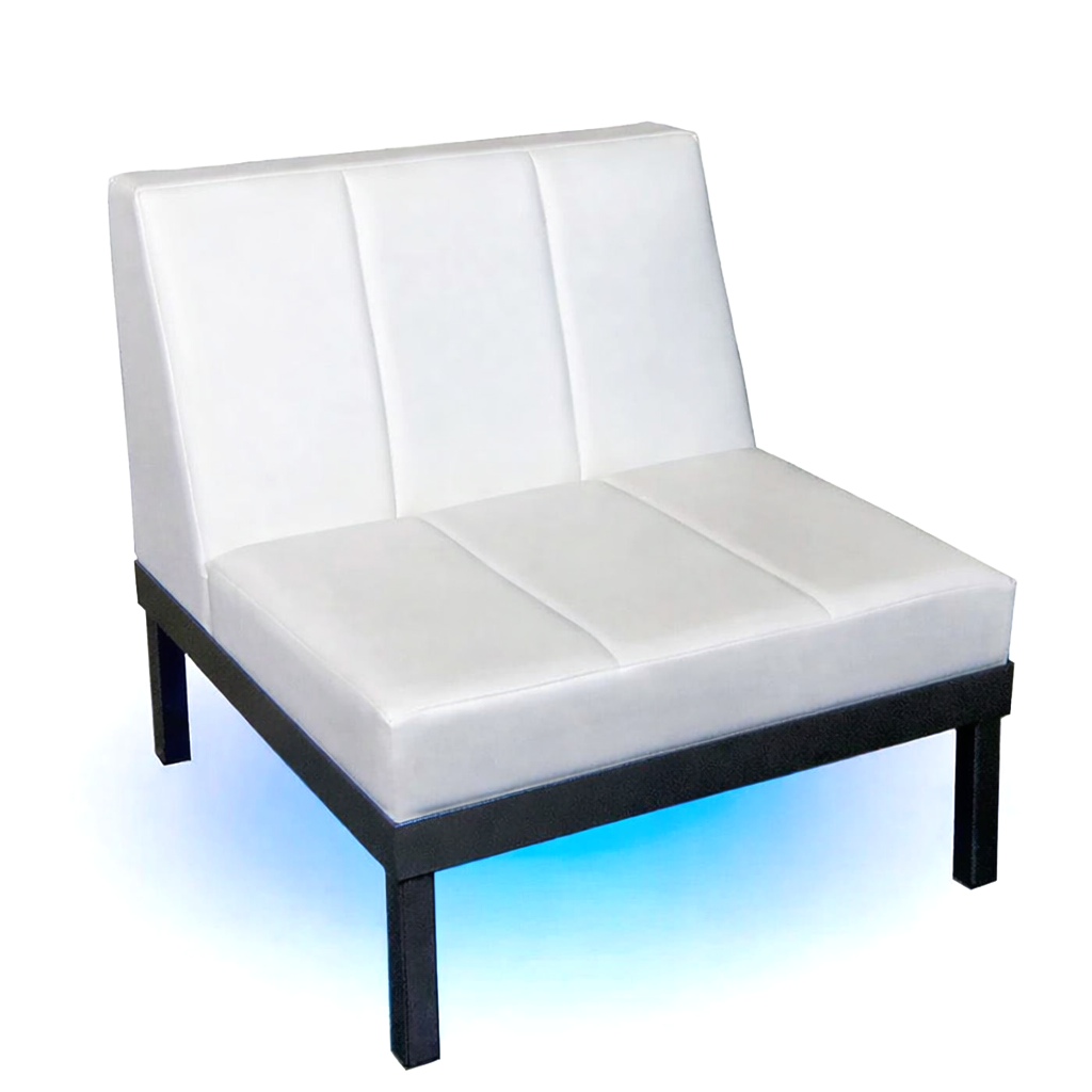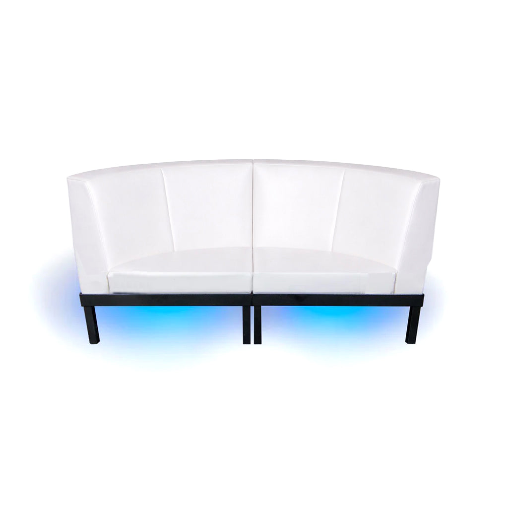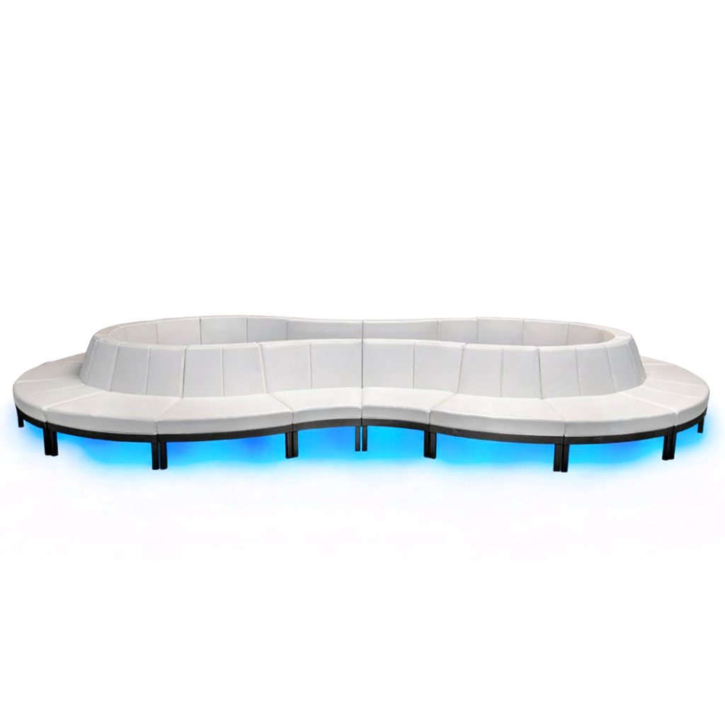 Exposed silver vein feet and frames add structure and solidity to counterpoint the breezy contemporary designs. Add swing tables with optional charging stations or underlighting in a variety of colors to further enhance the stylish vibe. Combine the elements in a distinct combination to customize the perfect pieces for your event.