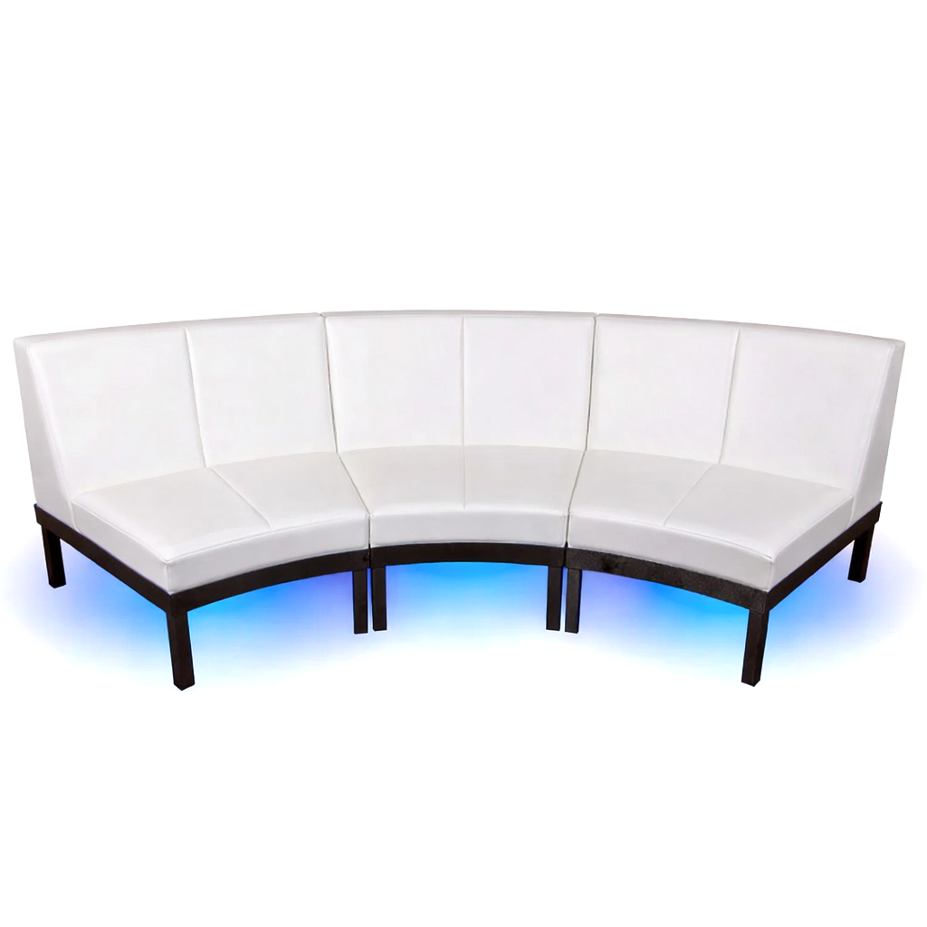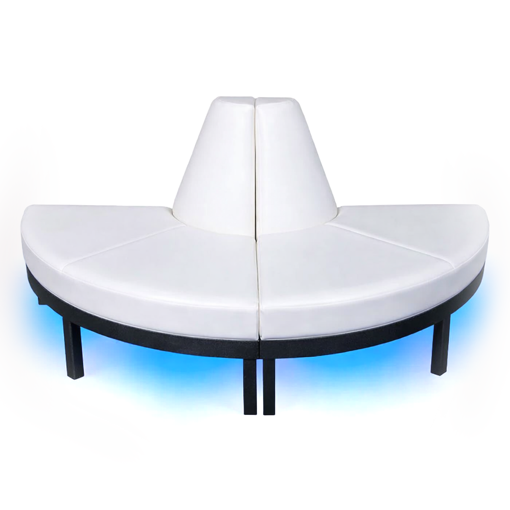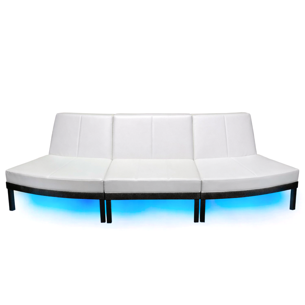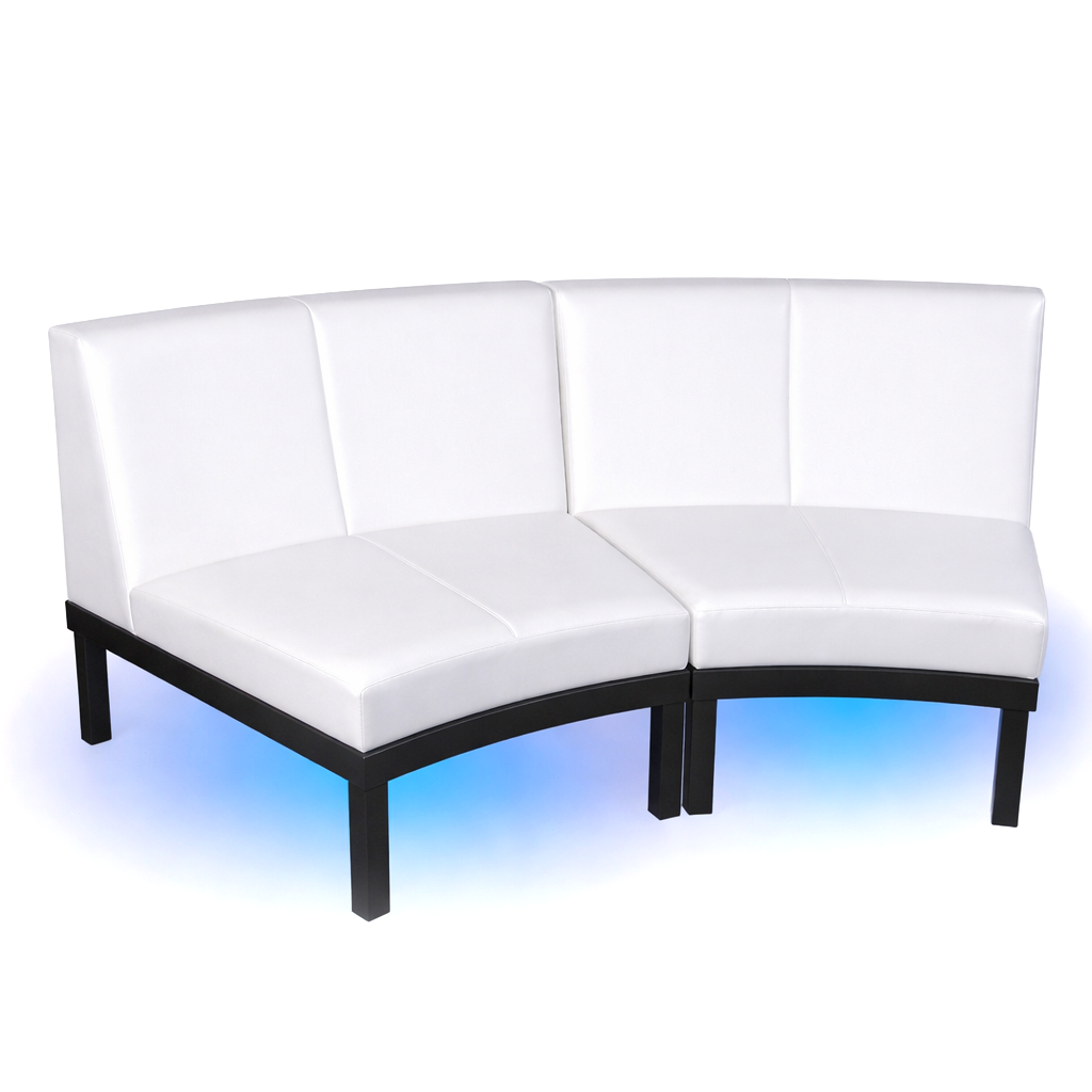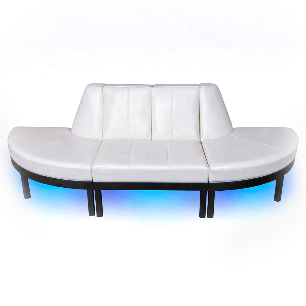 Exposed silver vein feet and frames add structure and solidity to counterpoint the breezy contemporary designs. Add swing tables with optional charging stations or underlighting in a variety of colors to further enhance the stylish vibe. Combine the elements in a distinct combination to customize the perfect pieces for your event.