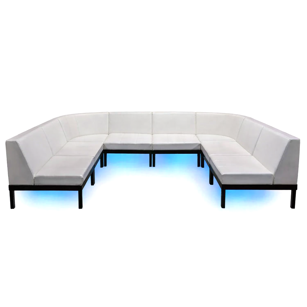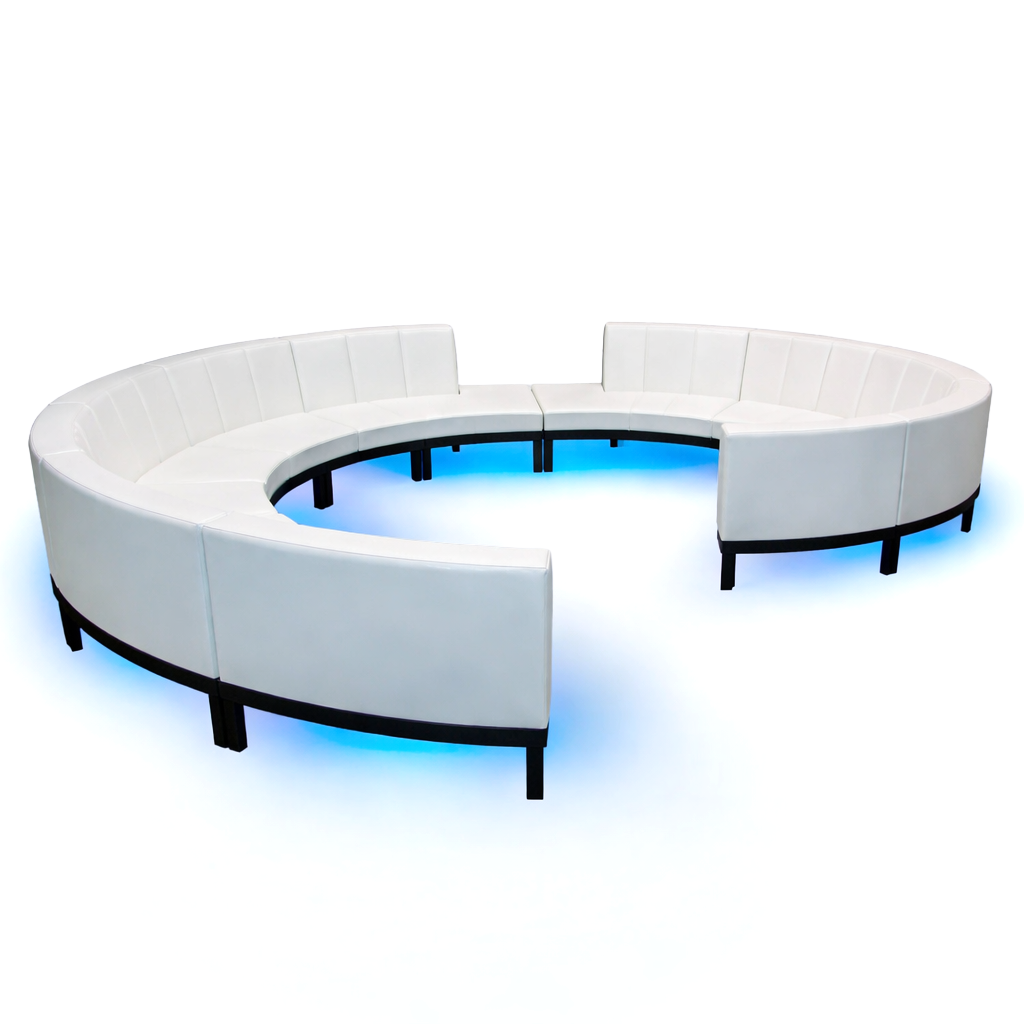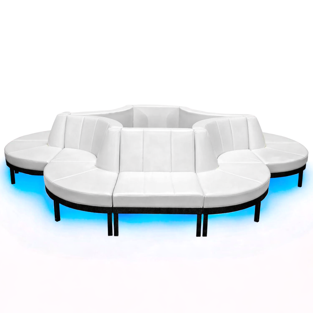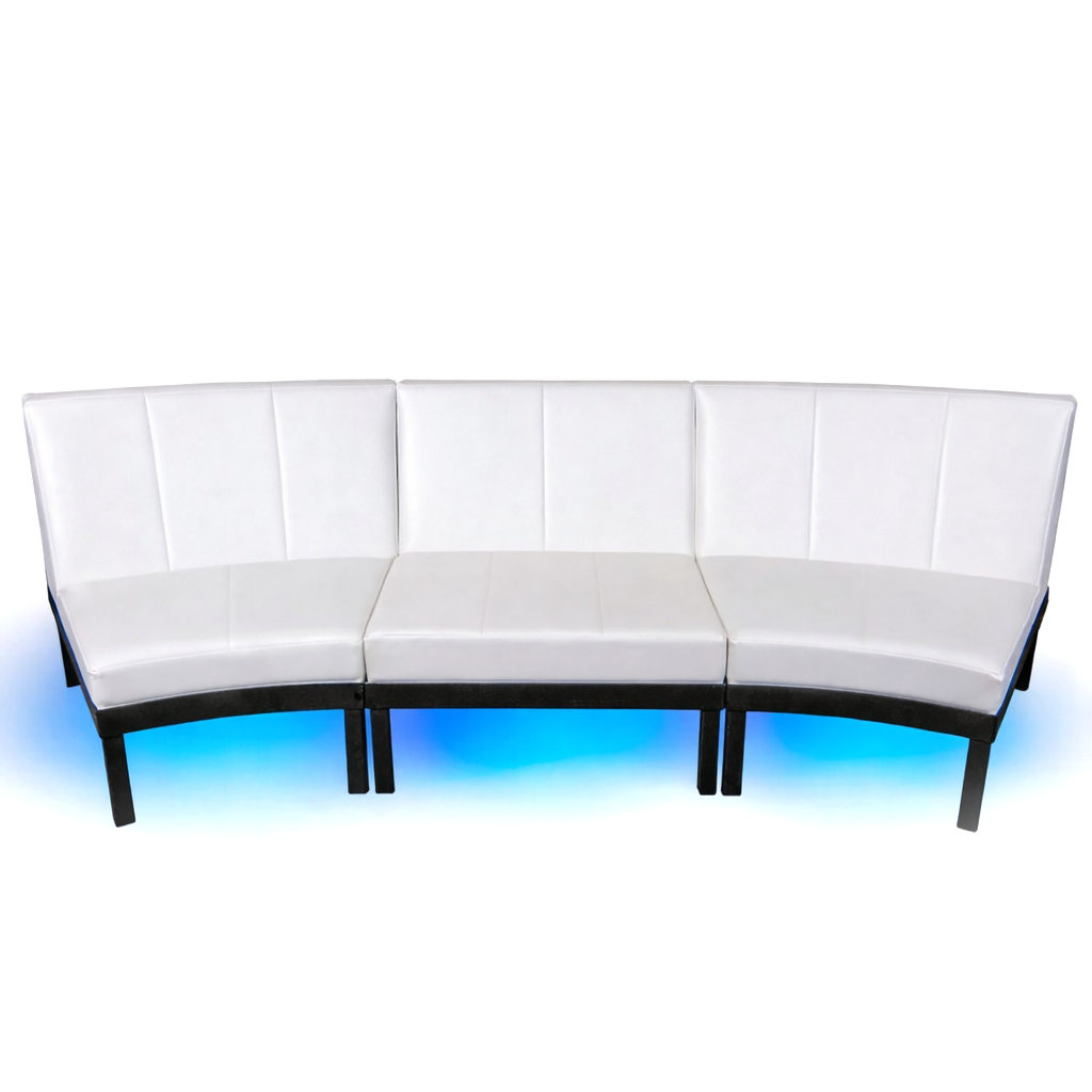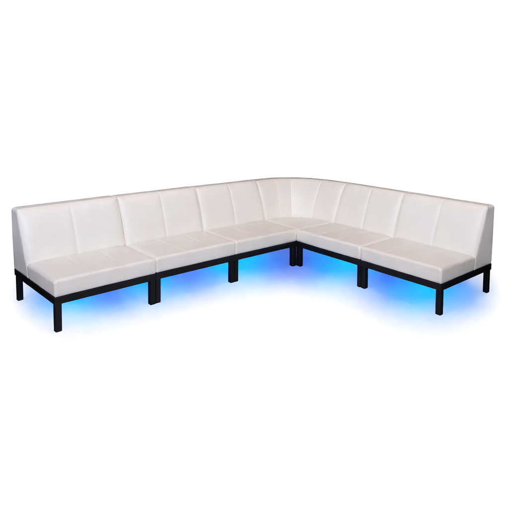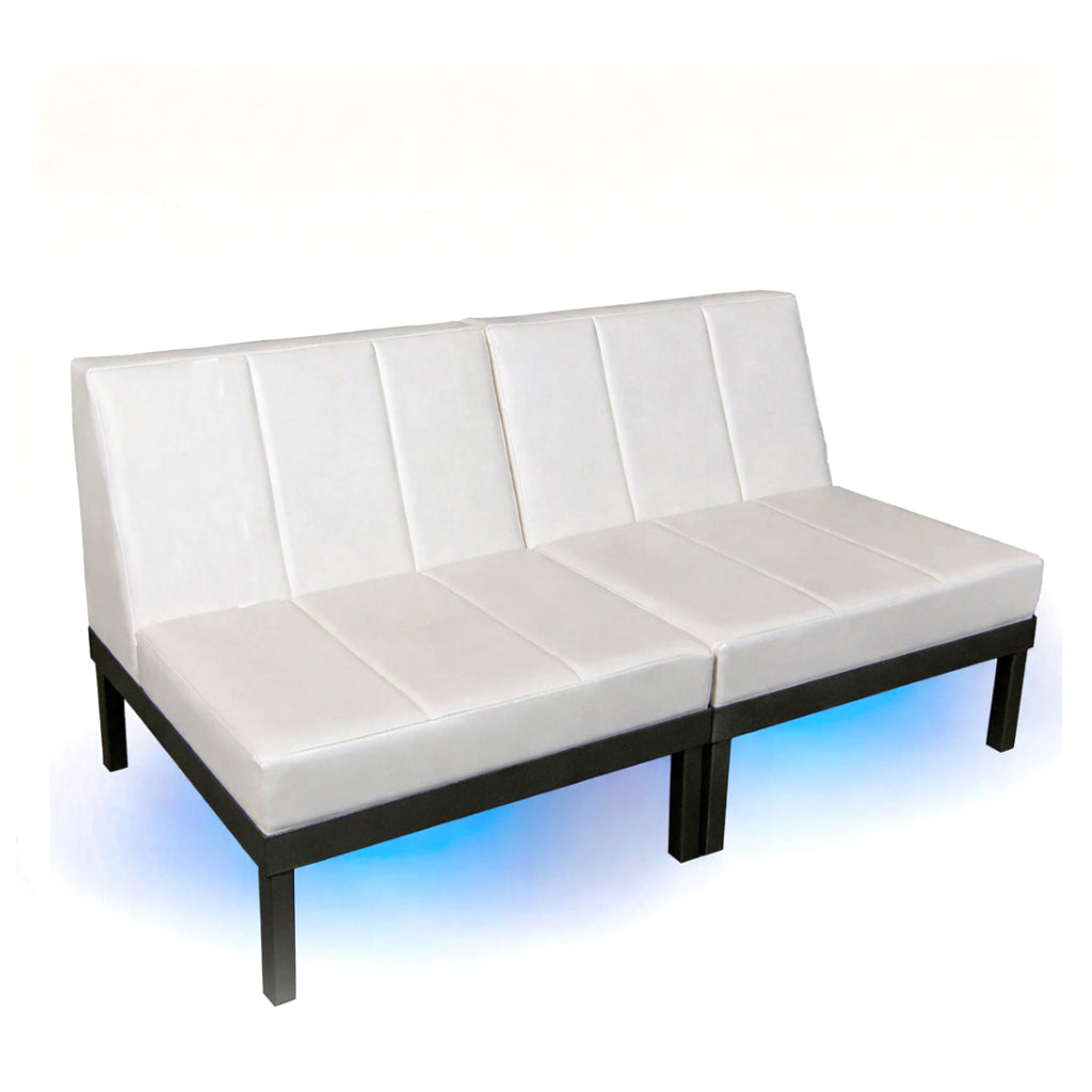 Exposed silver vein feet and frames add structure and solidity to counterpoint the breezy contemporary designs. Add swing tables with optional charging stations or underlighting in a variety of colors to further enhance the stylish vibe. Combine the elements in a distinct combination to customize the perfect pieces for your event.