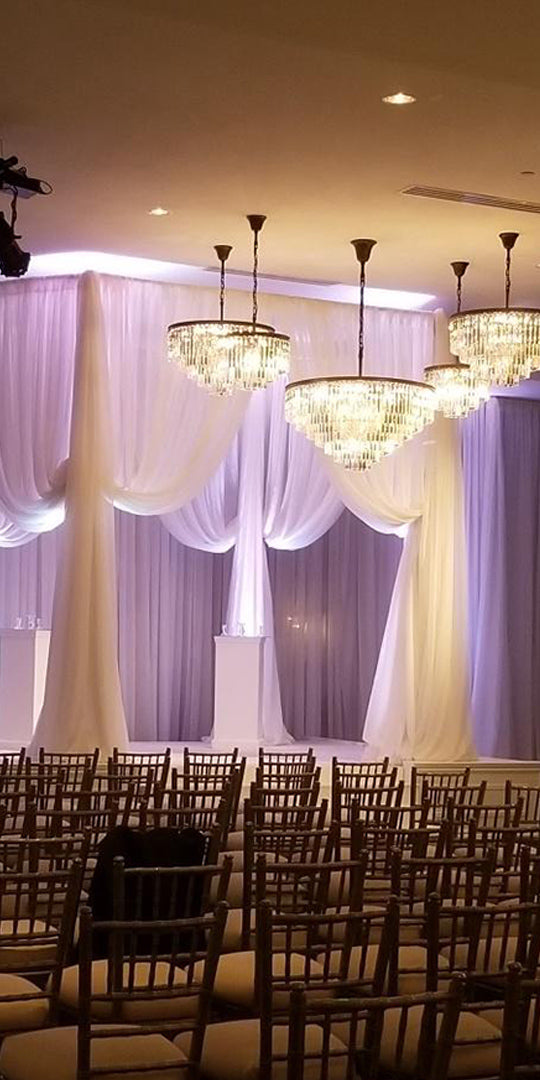 While specializing in executing transformative draping solutions for high-end bridal, VIP events, and social gatherings, Event Drapery, a Quest Events company, also offers an extensive rental inventory of pipe and drape along with scenic and furnishing rental solutions for the AV, exhibition, hospitality, special event and the film/TV industries.